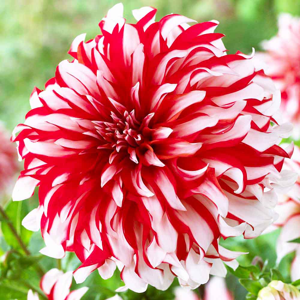 Цветение происходит с июля по сентябрь. Цветочные корзинки состоят из лепестков, сочетающих насыщенные оттенки белого и красного цветов. Яркий окрас привлекает внимание, а продолжительный период цветения позволяет долго наслаждаться красотой растения. Георгин Пенни Лейн идеально подходит как для срезки, так и для украшения цветников в групповых и смешанных посадках.