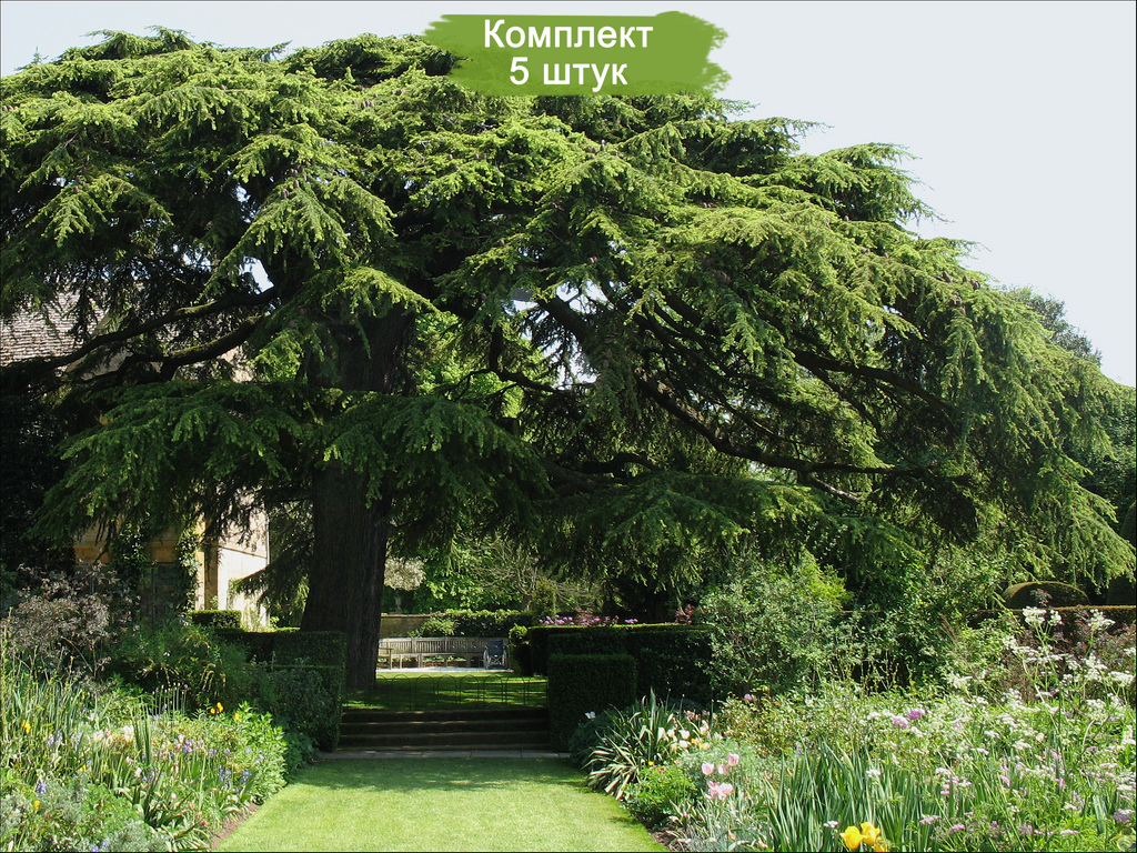 Набор из пяти саженцев ливанского кедра размером от 100 до 150 см предлагается по привлекательной цене — платите за четыре, получаете пять! Ливанский кедр в дикой природе способен достигать высоты до 55 метров, а его ствол может быть толщиной до 3,5 метров в диаметре. Однако в условиях культурного выращивания, например, в парках или садах, его размеры обычно не превышают 35 метров в высоту и два метра в диаметре ствола.